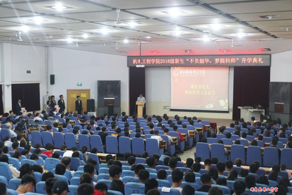 朗朗金秋,丹桂飘香。9月27日下午,yl6776永利集团2018级新生“不负韶华,梦圆科师”开学典礼在昌黎校区学术报告厅隆重举行。机电学院领导班子、全体教职工、373名全体新生参加了开学典礼。