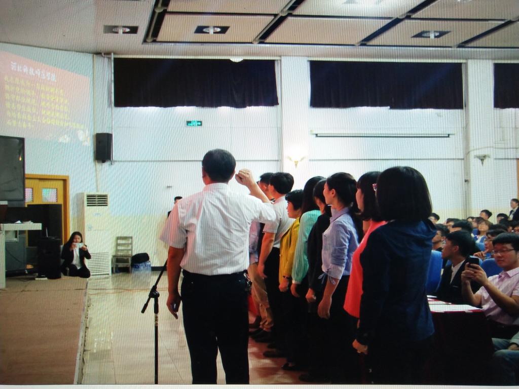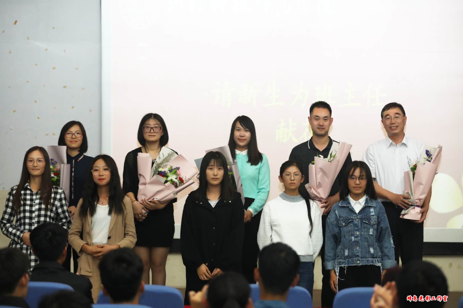 与会的教师代表还为新生代表佩戴了校徽,新生代表向2018级新生班主任老师献上鲜花。有助于增进师生间的交流互动,使新生能够尽快在心里产生家的归属感和亲切感,以便更快、更好地适应大学生活,明确大学学习目标,同时也为未来的学习生活工作奠定了良好开端、打下了坚实基础。