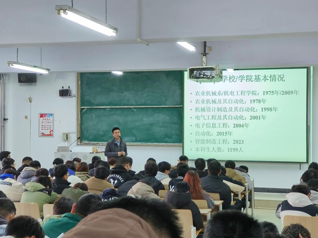 活动邀请了陈立东、刘策、李国昉和宋冬冬四位老师,分别从农机装备、自动控制、农业机械化发展历程和电气专业规划等方面与同学们进行了交流。
