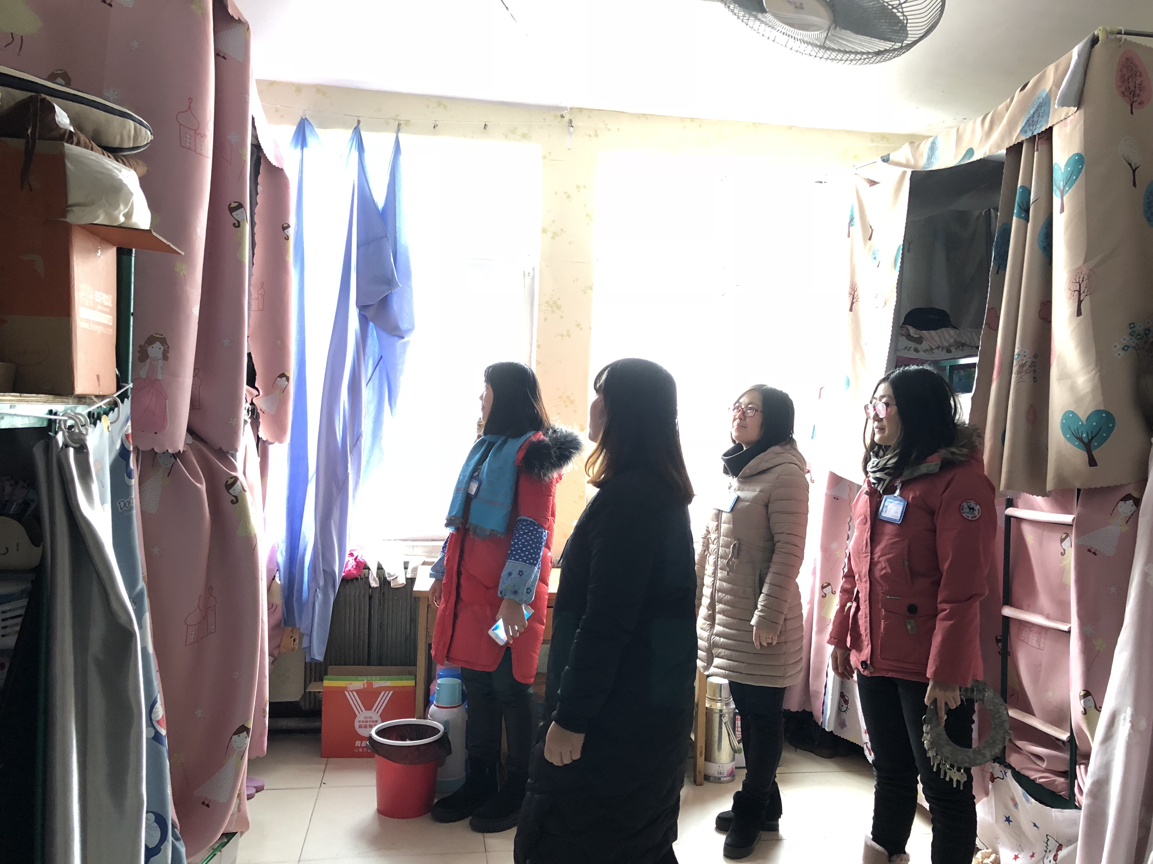 检查小组逐层、逐间走进学生宿舍,与学生交流,了解学生的学习、生活、思想动态,检查寝室内务,重点检查宿舍是否存在吸烟、使用违章电器、私拉电线等安全问题。针对存在问题的学生宿舍,检查组提醒学生务必提高安全防范意识,为自己和他人的生命和财产安全负责。