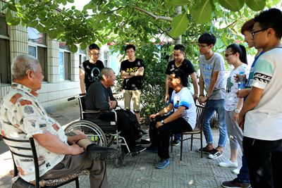 2016年6月5日下午,我院15级自动化专业全体团员来到昌黎县老年公寓开展“敬老爱老”活动,我校优秀毕业生付华与同学们一起参加了本次由学院团委组织的爱心志愿活动。