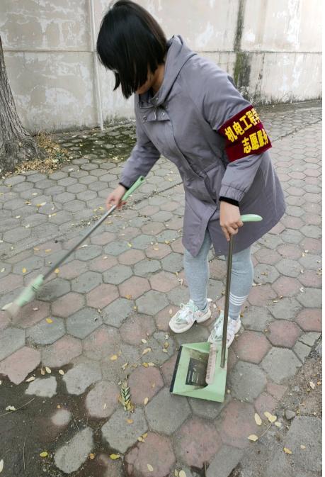 在校园的角角落落里,志愿者们有的拿着扫把卖力的扫着,有的蹲在地上认真清理角落的垃圾、杂物等。 张天强、郭增辰等志愿者们热情高涨,拿着扫帚等工具清扫落叶,草坪内垃圾。他们不怕苦,不怕累,不放过任何一处垃圾,任何一块“牛皮癣”。