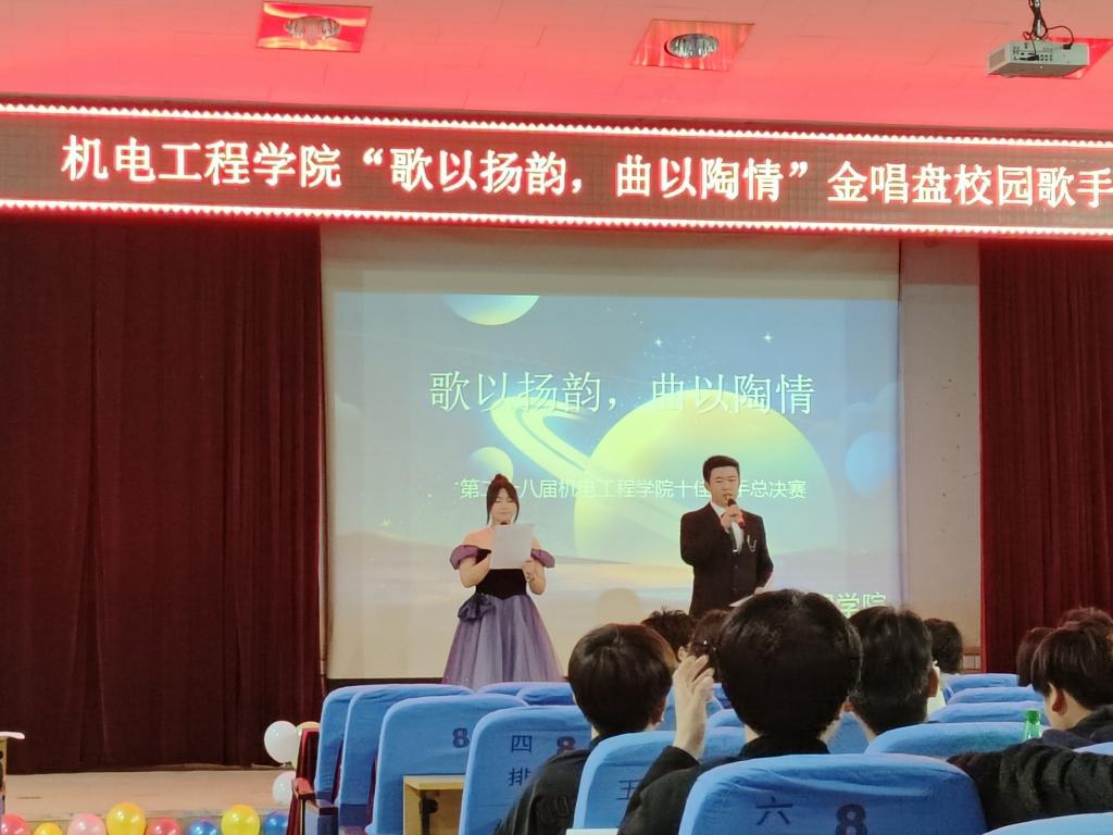 2024年4月7日,机电工程学院举办“歌以扬韵,曲以陶情”主题金唱盘校园歌手大赛,300余名青年学生参加了活动。