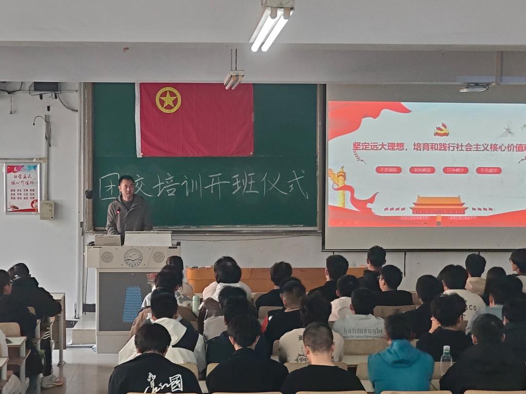 仪式上,全体学员起立奏唱团歌,学院团委要求学员认识团课的重要意义,思想上主动向党组织看齐,端正参与动机,坚定理想信念;珍惜学习机会,在实践中践行社会主义核心价值观,发挥团员先进模范作用,努力成为一名合格的共青团成员。最后团委负责老师讲授“坚定远大理想,培育和践行社会主义核心价值观”,希望当代青年坚定远大理想、勇挑时代重担、坚持踏实躬行、矢志艰苦奋斗。